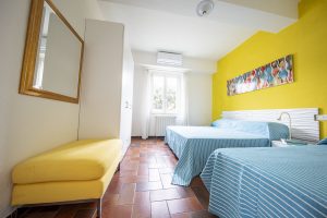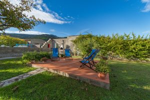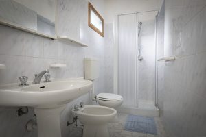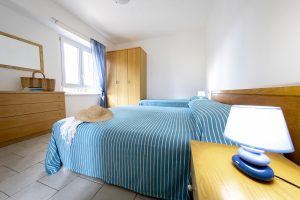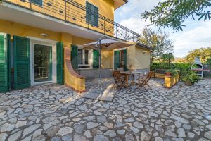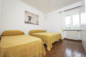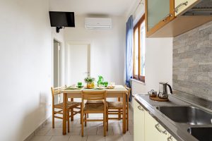 Appartamento situato al pian terreno di 50 mq composto da un’ampia camera tripla con letto matrimoniale e letto singolo, soggiorno con divano letto e cucina con microonde, bagno con box doccia. Spazio esterno privato attrezzato e giardino.