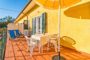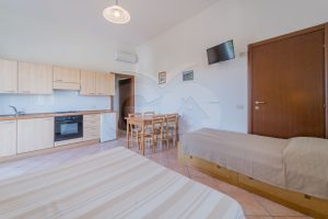 Appartamento di 35 mq posto al primo piano e composto da letto matrimoniale e poltrona letto singola, angolo cottura con forno, bagno con box doccia. Terrazza privata attrezzata.