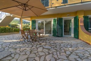 Appartamento di 45 mq posto al piano terreno e composto da due camere matrimoniali, cucina e bagno con box doccia. Veranda privata ed attrezzata, oltre che un piccolo giardinetto privato.