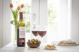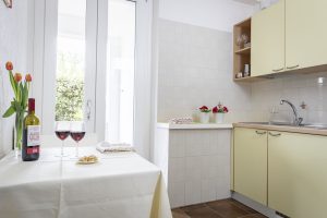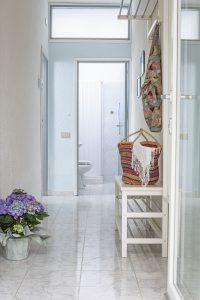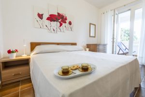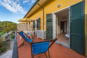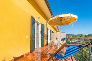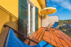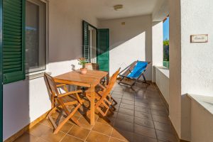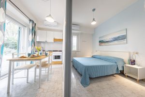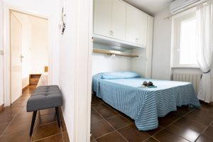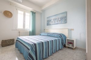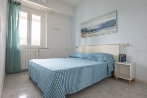 Appartamento di 70 mq posto al primo piano e composto da due camere, una con letto matrimoniale + letto singolo, una seconda con letto matrimoniale e poltrona-letto singola, soggiorno con angolo cottura con forno, lavastoviglie e divano letto, bagno con box doccia. Doppio terrazzo di cui uno attrezzato (ogni stanza ha l’affaccio sulle terrazze).